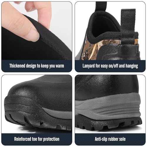 GUGULUZA Men's Ankle Rubber Boots, Short Hunting Boots with Neoprene, Waterproof Rain Footwear Insulated Outdoor Mud Shoes for Gardening,Fishing Camping 4