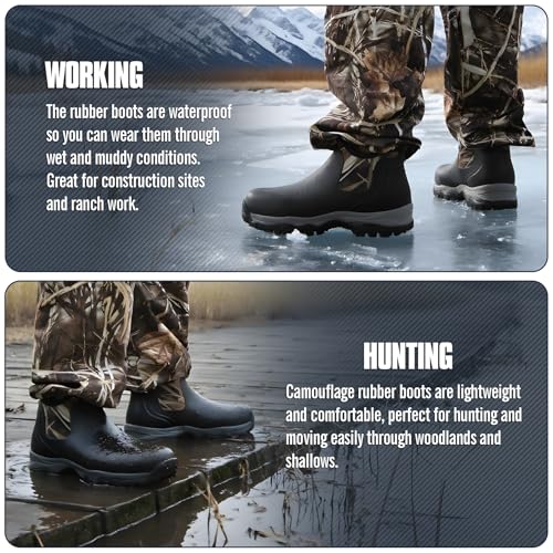 • Durable Build to Long Lasting: Crafted to outlast seasons of hard use. The rubber work boots toughness meets insulated work boots for men strength, with double-stitching at stress points. These mens hunting boots resist cracks, while ankle mud boots for men stay intact through mud. Perfect as mens garden boots, they outlast seasons of hard use.