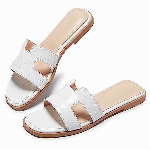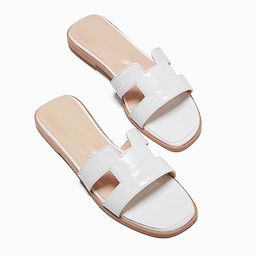 TRULAND H Strap Flat Slide Sandals for Women - Cute Fashion Open Square Toe Summer Dressy Sandals 6