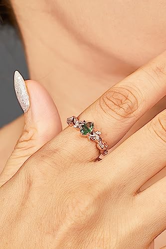 More information about Oval Cut 0.40CT Natural Moss Agate Ring Rose Gold Plated 925 Sterling Silver Green Gemstone Leaf Vine Nature Inspired Engagement Rings for Women Size 4-10