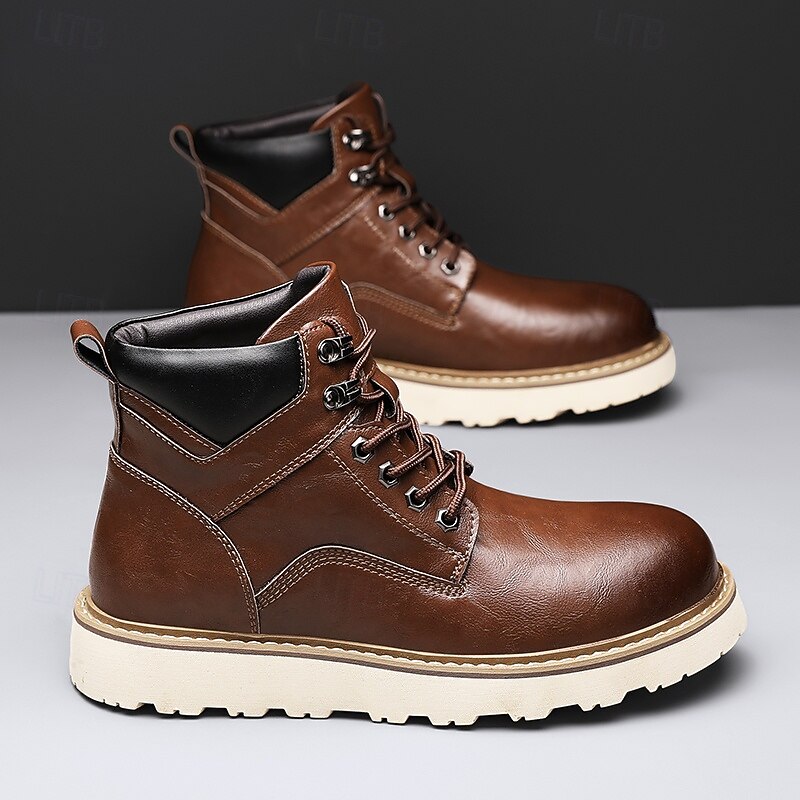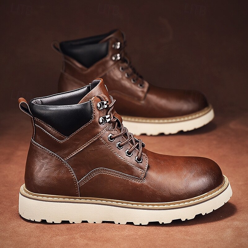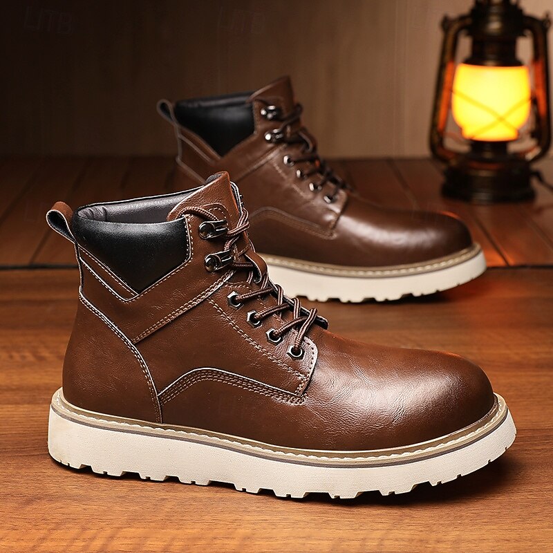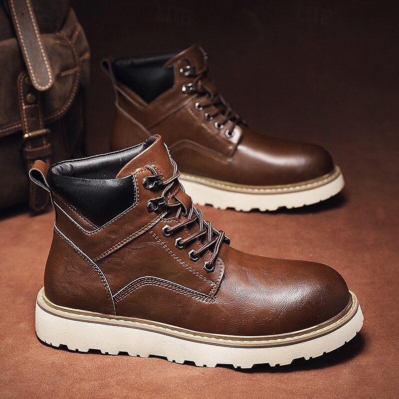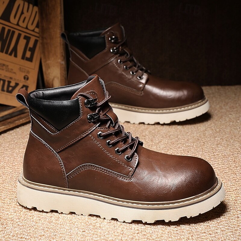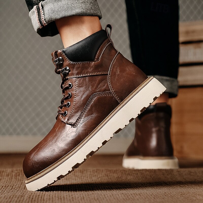 Men's Brown Lace-Up Ankle Boots – Casual Outdoor Walking Shoes with Comfortable Sole for Daily Wear and Weekend Outings 21