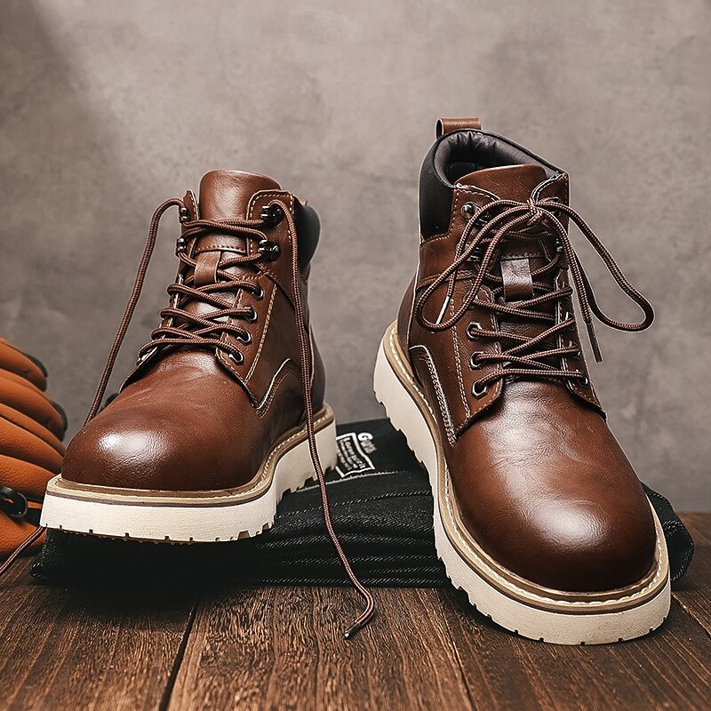 Men's Brown Lace-Up Ankle Boots – Casual Outdoor Walking Shoes with Comfortable Sole for Daily Wear and Weekend Outings 24