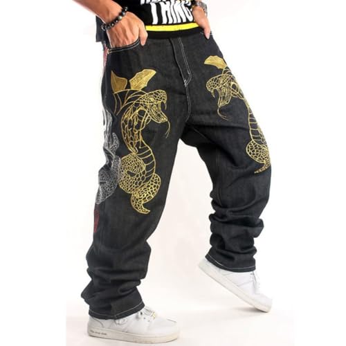 HOT ! Yollmart Men's Baggy Jeans Hip Hop Loose fit Embroidered Denim Dance Skateboard Pants