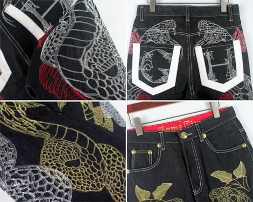 Yollmart Men's Baggy Jeans Hip Hop Loose fit Embroidered Denim Dance Skateboard Pants 7