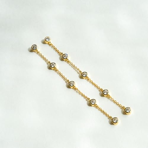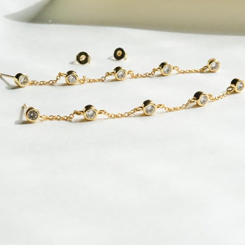 • Sleek and sophisticated, these eye-catching dangle earrings featured 5 sparkling bezel-set cz gemstones strung to a delicate chain that sway prettily with the slightest movement. The perfect drops that will leave you sparkling like a diamond. Wear them day or night to elevate any look with a touch of contemporary glamour.