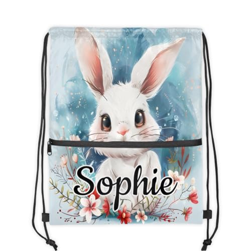 Cute Bunny Rabbit Custom Drawstring Backpack Waterproof Personalized Drawstring Bag for Men Women Gym Beach Travel Sport Sackpack 1