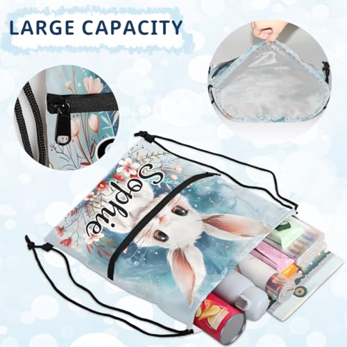 Cute Bunny Rabbit Custom Drawstring Backpack Waterproof Personalized Drawstring Bag for Men Women Gym Beach Travel Sport Sackpack 6