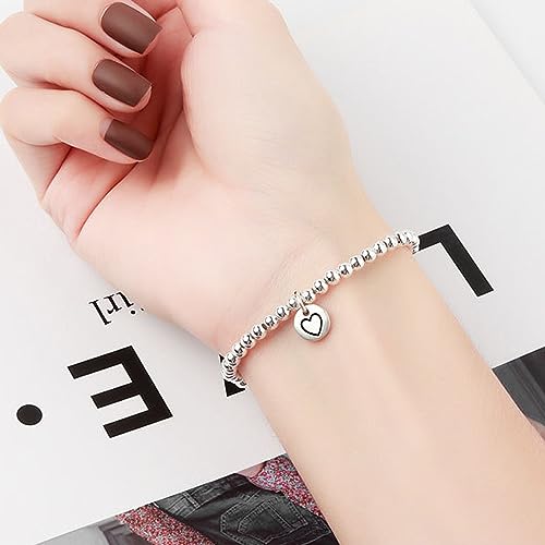 925 Sterling Silver Handmade Strand Chain Bracelet 4mm Bead Ball Stretch Bracelets for Women Silver Jewelry Gift 4