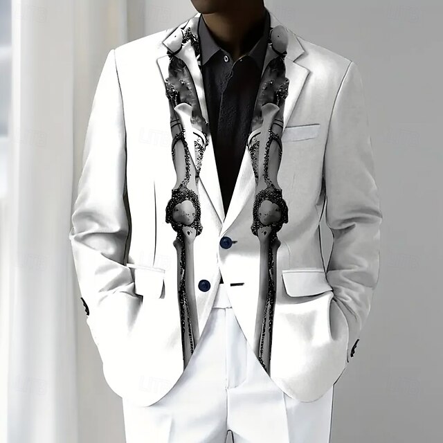 More information about Halloween Men's Blazer Outdoor Street Casual Casual Daily British All Seasons 100% Polyester Skeleton 3D Print Buttons Thermal Warm Comfortable Single Breasted Blazer White Brown
