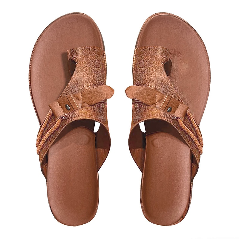 Highlights [Product Fabric] : Crafted with premium faux leather, these slip-on sandals offer durability and a chic appearance. The high-quality material ensures long-lasting wear suitable for various casual occasions. [Product Fit] : Designed with a cushy flat heel, these sandals provide excellent support and cushioning, making them ideal for all-day wear. The thoughtful craftsmanship promises a snug yet relaxed fit, perfect for those who appreciate both comfort and style. [Design Highlights] : Featuring a minimalist cross-strap design with an elegant buckle embellishment, these sandals bring a touch of sophistication to any casual ensemble. The solid-colored pattern offers a timeless look that complements various outfits, while the looser fit ensures easy slip-on convenience. [Occasions] : These sandals are perfect for daily wear, beach outings, and leisurely walks. Whether you're heading for a relaxed day at the beach or running errands around town, they ensure you step out in both comfort and style. Ideal for summer, their versatile design makes them a go-to choice for thermal-weather activities. [Size Range] : Available in sizes 36 to 43, these sandals cater to a broad range of foot sizes, offering a perfect fit for everyone. Whether you have petite or larger feet, these sandals provide a comfortable fit without compromising on style.