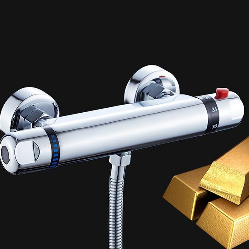 HOT ! Thermostatic Shower Mixer Bar Wall Mounted Chrome, Shower Mixer Tap with 38℃ Anti Scald Safty Button, Outlet G1/2 Round Mixer Bar Wall Mount