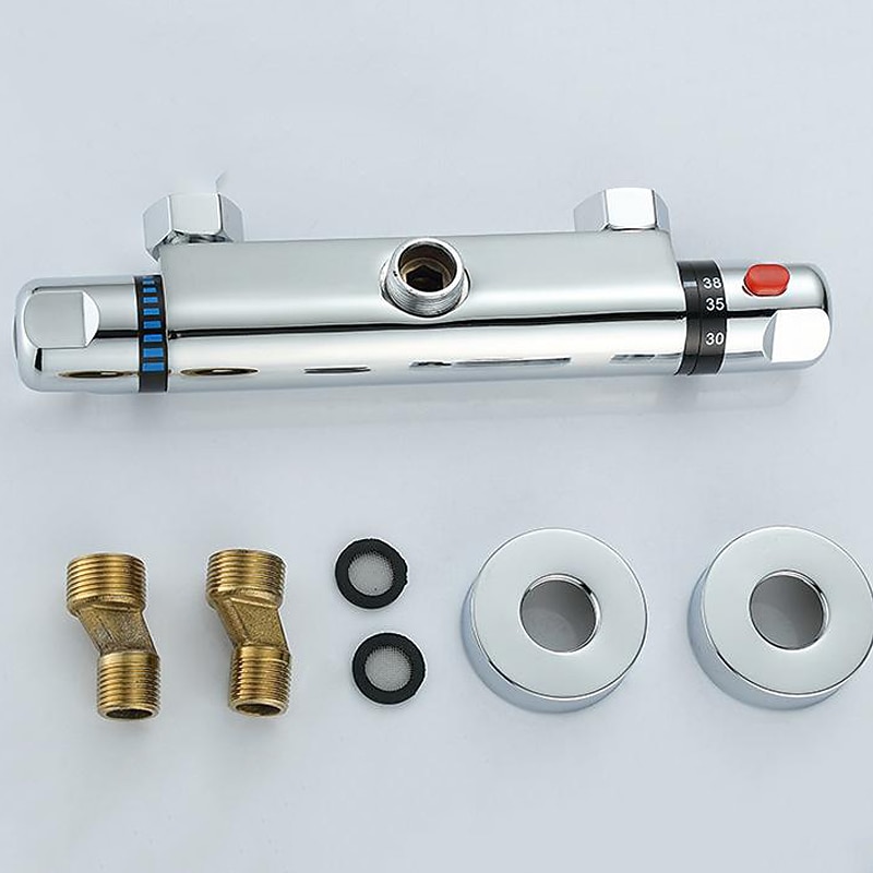 Highlights 【 Premium Material & Technology 】The exposed thermostatic shower mixer bar is made of high-precision solid brass. Its surface adopts PVD plating technology in all domains, which is corrosion-resistant and moisture-proof, anti-rust, long-lasting light and easy to clean. 【 Intelligent Temperature Control 】Compared with the ordinary shower, Our thermostatic shower mixer can automatically balance the cold and hot water pressure to maintain water temperature stable in a quick time, eliminating the need for manual adjustment. 【 Safe and Comfortable 】Outlet water temperature range: 20-50°C. Safety button temperature: 38°C. So you can enjoy a comfortable shower in the cold winter. Don't worry about the sudden cold or hot water, creates a comfortable shower experience. 【 Easy to Install 】The lower water outlet G1/2 is connected to the universal shower hose. The left is water regulation and the right is temperature control.So you just need connect the cold water pipe to the right and the hot water pipe to the left.The distance between the hot water inlet and cold water inlet is: 135-165mm. 【 Package 】1x shower thermostat mixer tap, 1x Installation accessories. If you have any questions during the shopping process, please don't hesitate to contact us. We provide prompt and friendly service. Warm Tips: Please check the interface dimension whether is fitting your shower tube size. Before shipping,every products have been tested by high-pressure water injection in order to ensure watertight.It is normal,if you find some water inside the faucet.Feel free to install it, please.