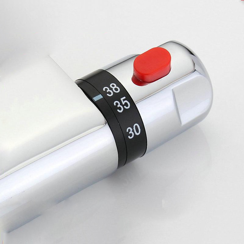 More information about Thermostatic Shower Mixer Bar Wall Mounted Chrome, Shower Mixer Tap with 38℃ Anti Scald Safty Button, Outlet G1/2 Round Mixer Bar Wall Mount