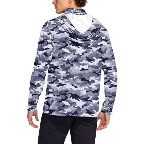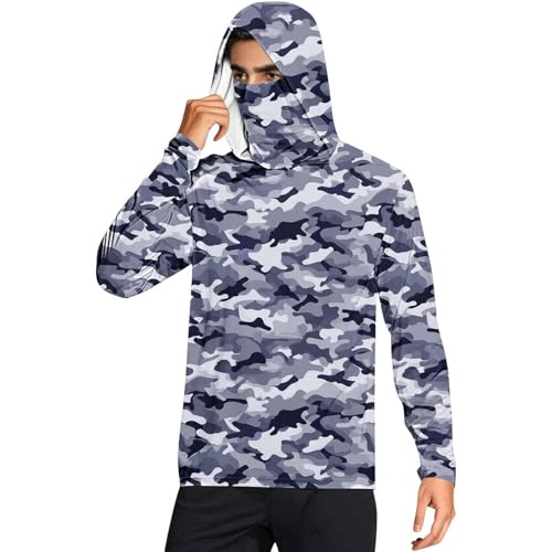 • Fur description: Stay protected outdoors with our UPF 50+ men's sun hoodie, designed for fishing, hiking, swimming, and construction work. This long-sleeve UV protection shirt blocks 98% of harmful rays to help shield your skin from the sun. The built-in face mask and adjustable hood offer added coverage, while the breathable, quick-dry fabric is lightweight for enhanced comfort during extended wear.