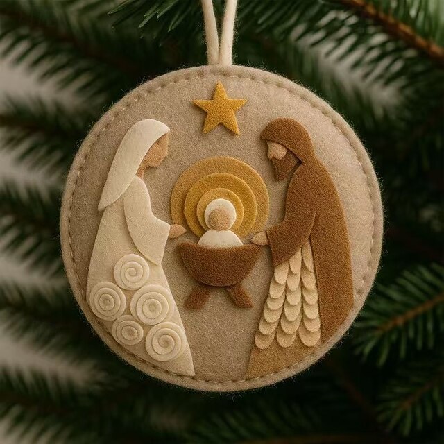 Christmas Handmade Felt Ornament Nativity Scene Decoration Jesus Birth Hanging Craft, Holiday Tree Decor, Gift Hanging Decoration 1