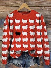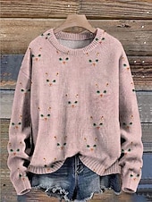 More information about Women's Sweater Casual Soft Floral Ribbed Crew Neck Knitted Print Long Sleeve Regular Tops Knit Outdoor Daily Weekend White Pink Fall Winter