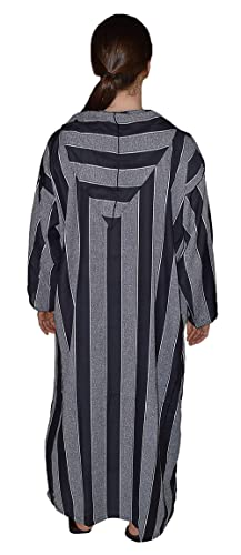 HOT ! Treasures Of Morocco Moroccan Men Djellaba Handmade Hooded Caftan Black & White With Matching Embroidery Tread Thobe Loungewear African Large
