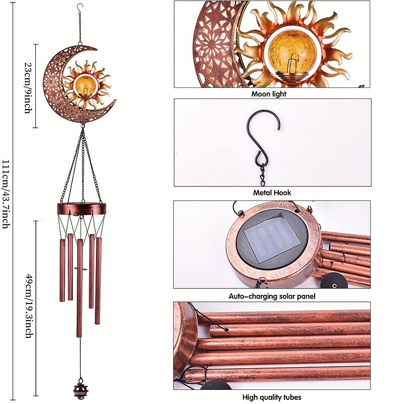 More information about Solar Wind Chimes Outdoor Light Moon Sun Star Lamp Wrought Iron Sun Lawn Flood Light Patio Outdoor Garden Decoration Waterproof Warm White Light