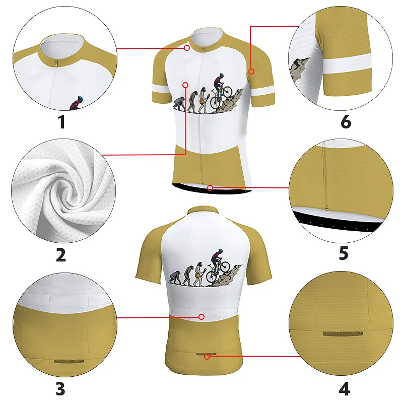 Men's Cycling Jersey Patterned Funny Evolution Short Sleeve Bike Jersey Top with 3 Rear Pockets Mountain Bike MTB Road Bike Cycling Quick Dry Reflective Strips Back Pocket Sweat wicking Sports Red 22