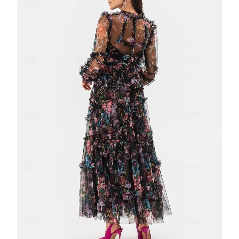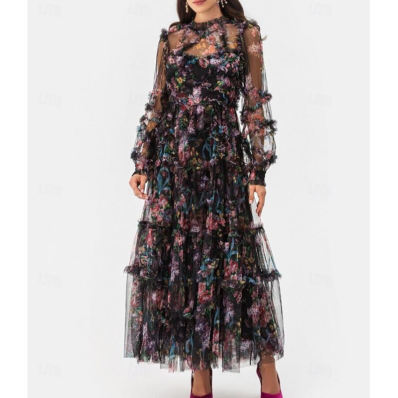 Highlights [Fabric] : Crafted from delicate tulle, this dress features an intricate embroidery embellishment, giving it an elegant and sophisticated edge. The sheer fabric provides a soft, airy feel, perfect for both formal and semi-formal events. [Silhouette] : The A-Line silhouette of this dress offers a flattering fit for all body types. Flowing from the fitted bodice to an ankle-length hem, it creates a graceful and feminine look that is timeless and versatile. [Design Highlights] : The dress shines with its jewel neckline and half sleeves, adding a touch of classic elegance. The embroidery patterns provide a lively, floral-inspired charm, while the absence of a built-in bra ensures comfort and flexibility. [Occasions] : Ideal for a variety of special occasions, such as cocktail parties and garden parties. This dress is also an excellent choice for wedding guests or as a mother-of-the-bride dress, where an elegant yet stylish appearance is desired. [Size Range] : Available in custom measurements, as well as standard sizes S, M, L, XL, XXL, and XXXL, ensuring a perfect fit for everyone.