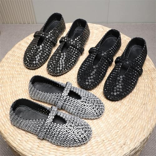 JANSEVEN Women Rhinestones Ballet Flats Fashion Crystal Flat Round Toe Sparkling Party Evening Shoes 6