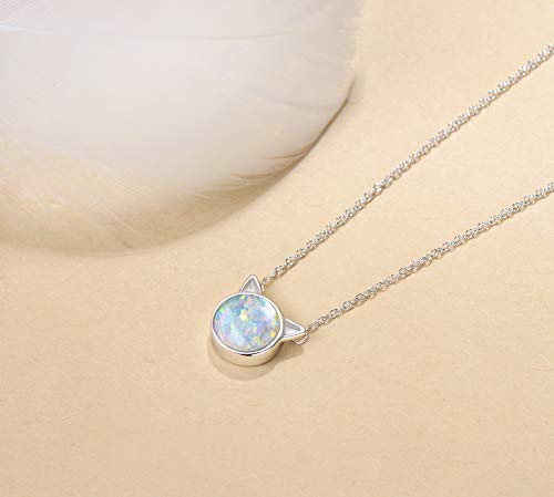 • 🐱MATERIALS🐱: The FANCIME Cat Opal Necklace is well crafted in sterling silver and created opal stone. All metals are lead free, nickel free and hypoallergenic. It is very dainty, fashionable and safety.