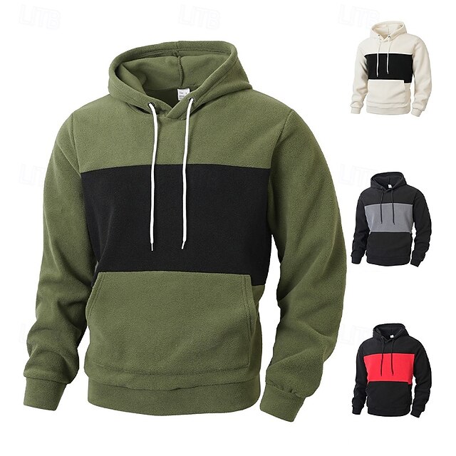 More information about Men's Hoodie Fleece Hoodie Black Army Green Red Beige Hooded Plain Patchwork Color Block Sports & Outdoor Casual Daily Streetwear Cool Sportswear Fall Winter Clothing Apparel Hoodies Sweatshirts