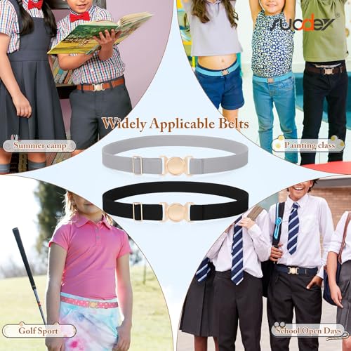 • 🌟【Comfortable Elastic Design】: 2 Pcs Kids Belts are made with highly elastic fabric for all-day comfort without constraint. The hardware material is made of zinc alloy, which will not rust and is durable and long-lasting