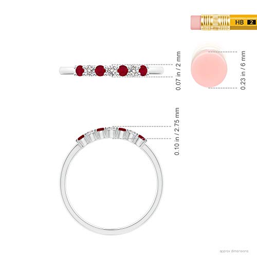 Angara Natural Ruby Wedding Ring for Women | Round Ruby Diamond Half Eternity Ring in White Gold | July Birthday, Anniversary, Gemstone Jewelry Gift | AA | 2mm | Ring Size- 6 2