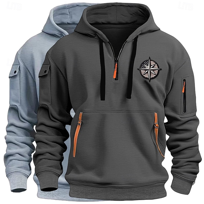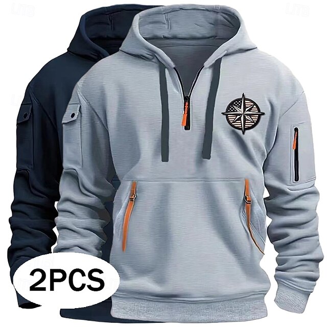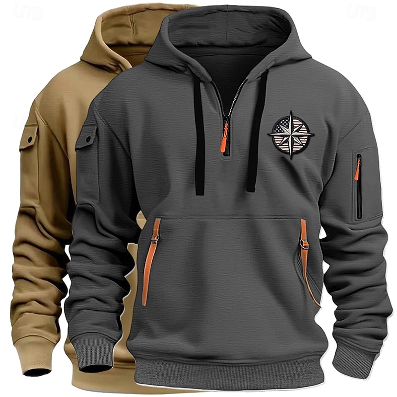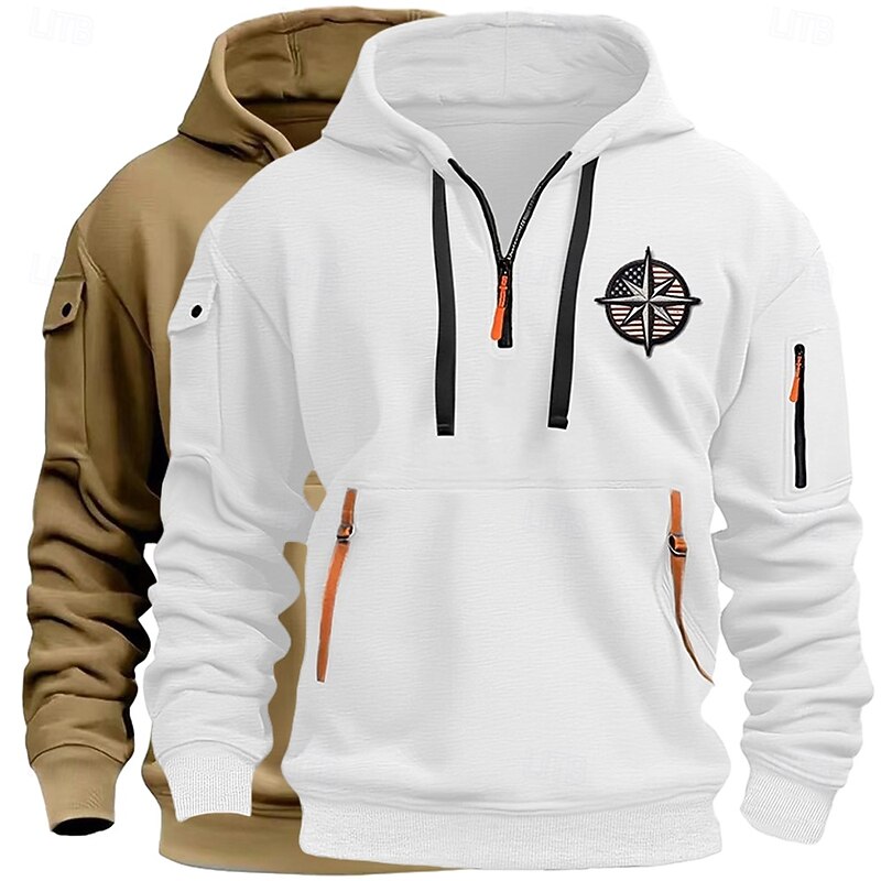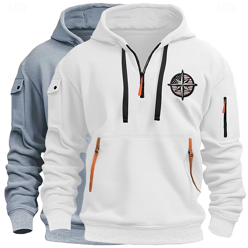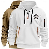 More information about Men's Hoodie Quarter Zip Hoodie Fleece Hoodie Tactical Hoodie White+Khaki Navy Blue+White Dark Gray+Light Gray Navy Blue+Light Gray White+Light Gray Hooded Plain Zipper Sports & Outdoor Casual Daily