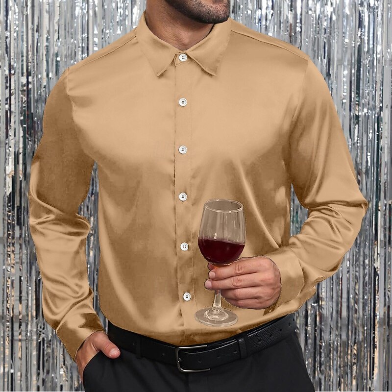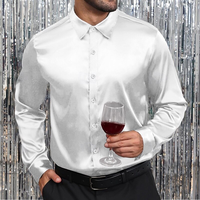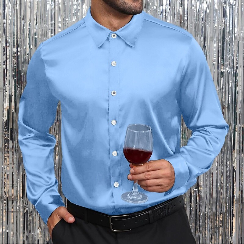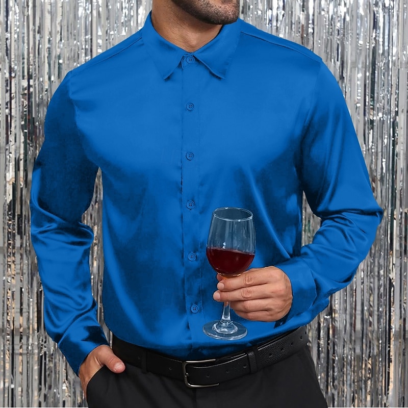 More information about Men's Shirt Satin Shirt Dress Shirt Casual Shirt Button Up Shirt Prom Shirt Plain Formal Wedding Black White Wine Royal Blue Long Sleeve Lapel Spring & Fall All Seasons Clothing Apparel