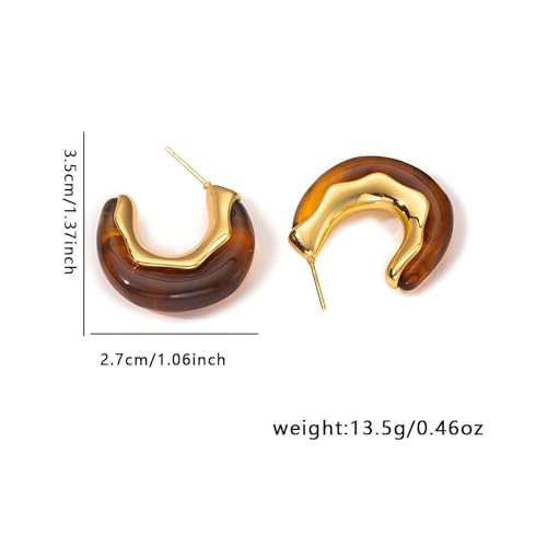 HOT ! Chunky Gold Dangle Earrings for Women Non Tarnish Pink Brown Amber Resin Earrings Trendy 18K Gold Plated Dangle