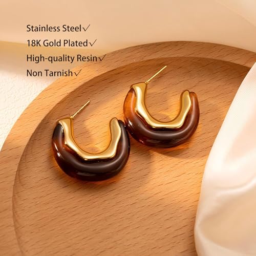 More information about Chunky Gold Dangle Earrings for Women Non Tarnish Pink Brown Amber Resin Earrings Trendy 18K Gold Plated Dangle