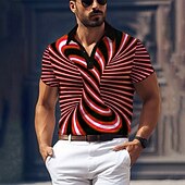 Men's Graphic Golf Shirt Short Sleeve Polo Shirts Collared Shirts Casual Vacation Wear Rave Wear Party Outfits Buttons 3D Print Summer Red Blue Orange 7