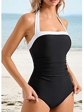 More information about Women's Swimwear One Piece Monokini Swimsuit Backless Tummy Control Slim Vacation Beach Wear Solid Color Color Block Halter Neck Sleeveless Bathing Suits
