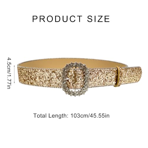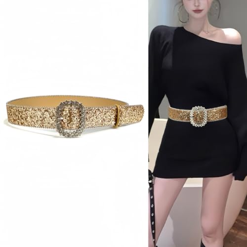 Shimmering Sequins Pin Buckle Belt for Adult Teens Blingbling Rhinestones Belt must-have Waiststrap for Dresses Sweaters
