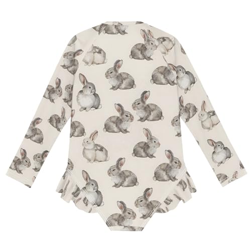 ALAZA Gray Rabbit Bunny Retro Girls One Piece Swimsuit Long Sleeve Rash Guard Swimsuits UV 50+ Swimwear Zipper 1
