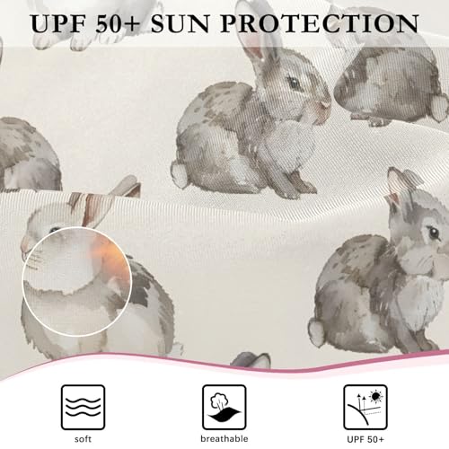 ALAZA Gray Rabbit Bunny Retro Girls One Piece Swimsuit Long Sleeve Rash Guard Swimsuits UV 50+ Swimwear Zipper 5