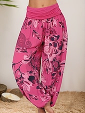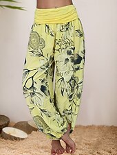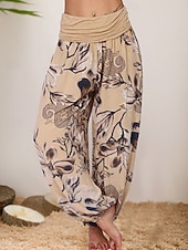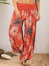 More information about Women's Harem Pants Vintage Ethnic Style Casual Full Length High Waist Floral Graphic Inelastic Outdoor Vacation Violet Yellow Orange Khaki Summer Spring