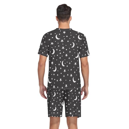 Mens Pajama Set Short Sleeve Stars and Moon 2-piece Lounge Sleep Sets Men's Sleepwear S-XXL 2