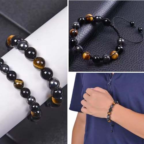• PREMIUM QUALITY MATERIALS:The men's bracelet is carefully crafted with the finest tiger eye crystals, obsidian and hematite, each material is carefully selected to ensure the perfect texture and appearance, the high quality materials make the bracelet very sturdy, no need to worry about fading and breaking.