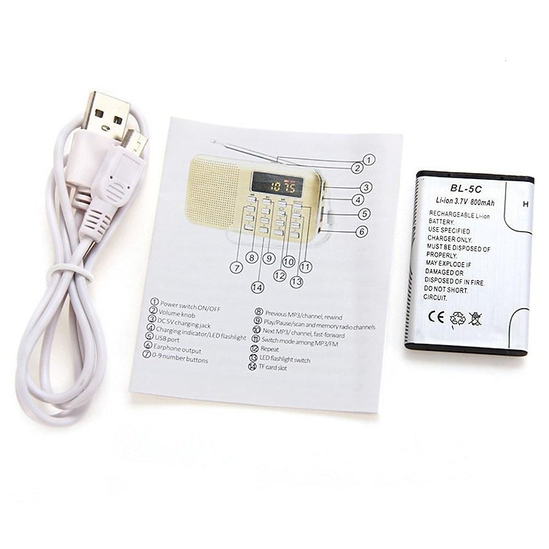 Highlights Product Selling Points: 1. Portable and Compact Design: With a thickness of only 2cm, this radio is refined, elegant, and easy to carry. Its personal stent design ensures that it stands firm, despite its thin size. 2. Exquisite Workmanship: The surface shell of the radio is crafted using UV technology, giving it a delicate and sturdy appearance. It is scratch and wear-resistant, offering a great visual appeal. 3. Great Radio and Amazing Sound Quality: The radio's long antenna ensures excellent reception, making it perfect for use even in remote areas. The built-in magnetic speakers deliver powerful bass and treble, providing an immersive sound experience. 4. Versatile MP3 Music Player: This radio supports TF cards and USB disks, allowing you to enjoy your favorite music on the go. With a standard 3.5mm jack, you can also connect earphones if needed. The large LED screen display is easy to read, and the device comes with a long-lasting rechargeable Li-ion battery. 5. Emergency Flashlight Feature: The radio is equipped with an emergency flashlight, which can be extremely useful in situations where you require additional light. Additional Information: - Digital Radio Advantage: This pocket-sized radio is mini and can easily fit in your pocket or palm. Its golden color and child-friendly features make it appealing to users of all ages. - Music Player Speaker Function: The radio remembers the last song played, so you don't have to start from song #1 every time. The repeat button offers three choices: repeat the current song, repeat the entire folder, or repeat the entire collection. Additionally, you can skip through songs one by one or use the load number to directly access a desired track.