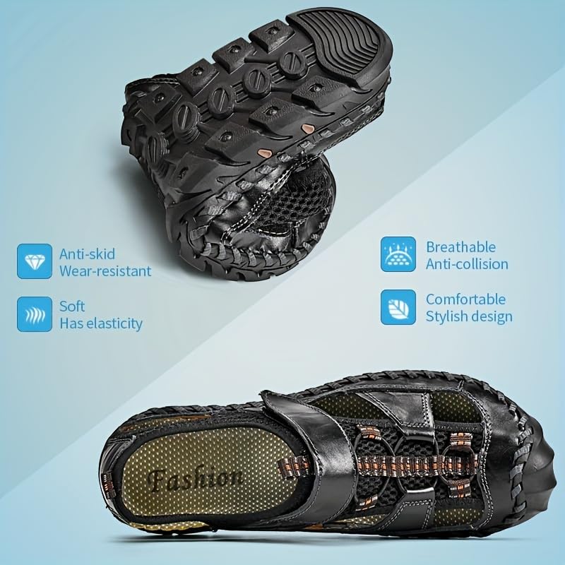 Men's Summer Closed Toe Hiking Sandals, Comfy Breathe Splicing Mesh Non-Slip Softsole Outdoor Travel Beach Shoes 5