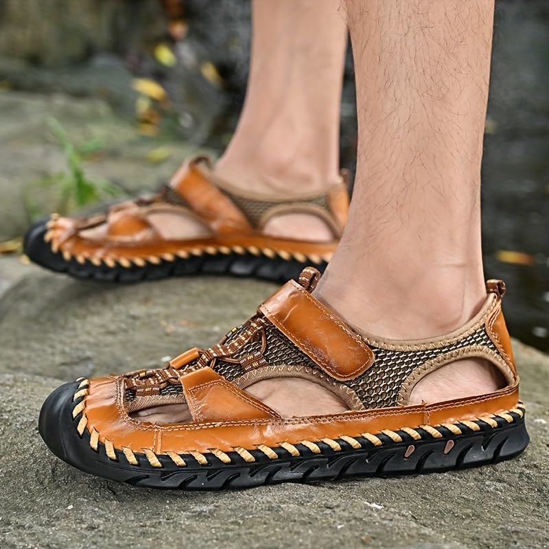 Men's Summer Closed Toe Hiking Sandals, Comfy Breathe Splicing Mesh Non-Slip Softsole Outdoor Travel Beach Shoes 7