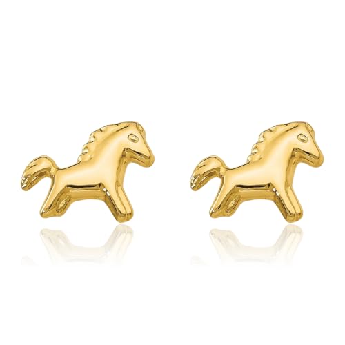 14K Solid Yellow Gold Horse Head Studs Animal Lover Equestrian Earrings 1