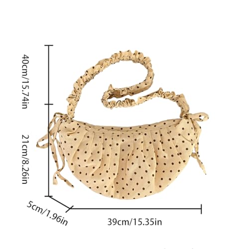 • 【Stylish Retro Design】This charming shoulder bag features a playful polka dot pattern and elegant pleats, inspired by vintage fashion. The crescent moon shape adds a unique touch, making it a standout accessory for any outfit.