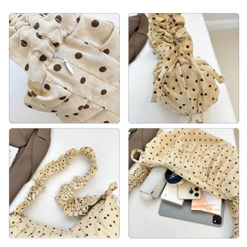 Crescent Crossbody Bags for Women Slouchy Shoulder Bag Drawstring Hobo Dumpling Bag Polka Dot Purse Work Commuter Travel 5