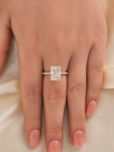4.5CT Stunning Radiant Cut Engagement Ring for Women,Simulated Diamond Ring,18K White Gold Plated 925 Sterling Silver Promise Ring 4