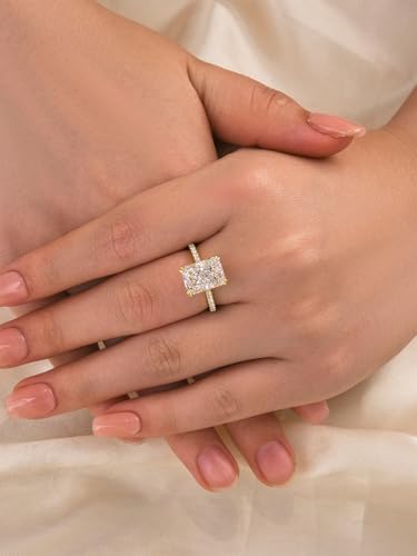 4.5CT Stunning Radiant Cut Engagement Ring for Women,Simulated Diamond Ring,18K White Gold Plated 925 Sterling Silver Promise Ring 6
