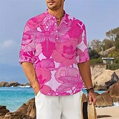 More information about Men's Floral Tropical Flowers Shirt Summer Hawaiian Shirt Aloha Shirt Long Sleeve Shirt Stand Collar Hawaiian Resort Vacation Daily Wear Going out Pink Blue Orange S M L